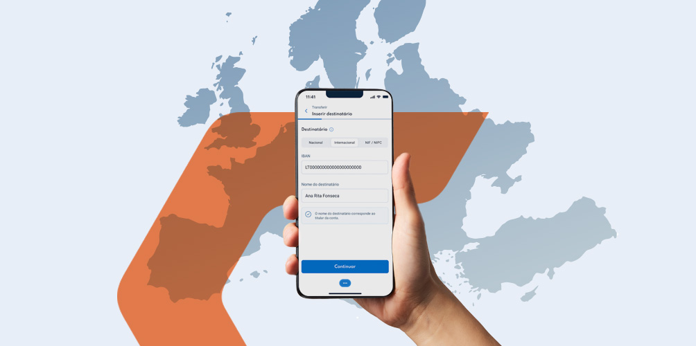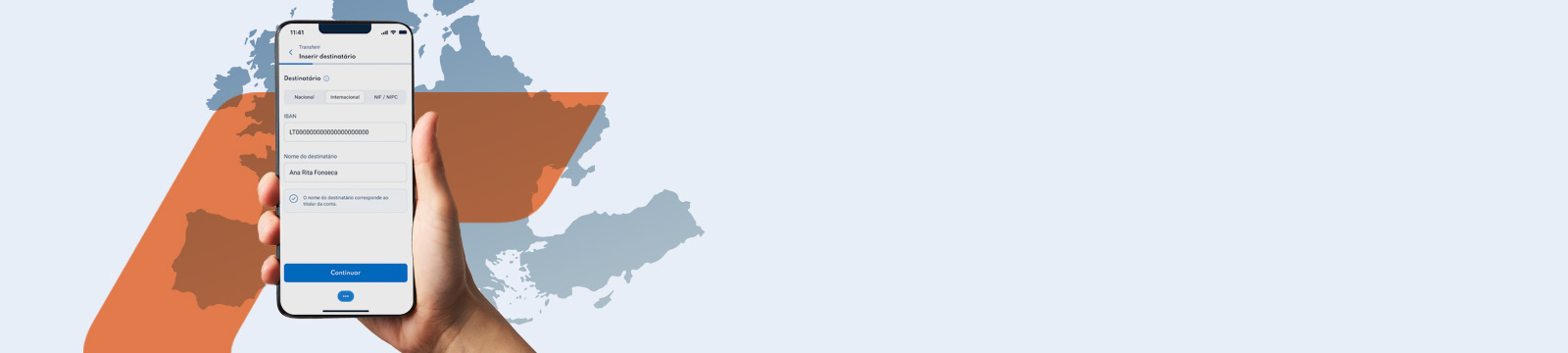 Ao realizar uma transferência a crédito nacional (tradicional ou imediata) ao introduzir o IBAN da conta do beneficiário, ser-lhe-á automaticamente indicado o nome do primeiro titular da conta de destino.
