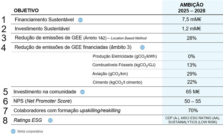 A Estratégia de Sustentabilidade 2025-2028 materializa a ambição da Caixa em ser líder no financiamento sustentável em Portugal, impulsionando uma transição justa para uma economia neutra em carbono e a criação de impacto positivo nas comunidades.