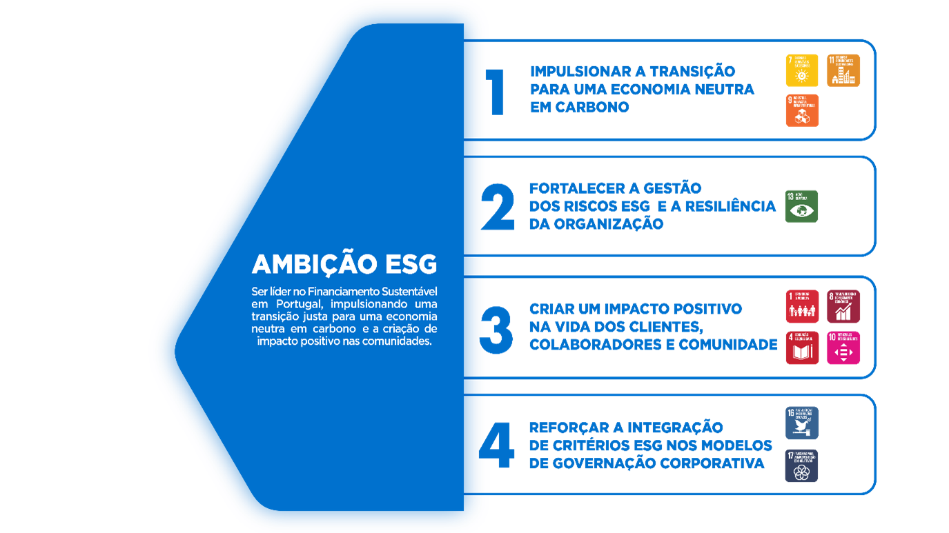 Este compromisso materializa-se em torno de quatro pilares estratégicos e de oito metas ESG.